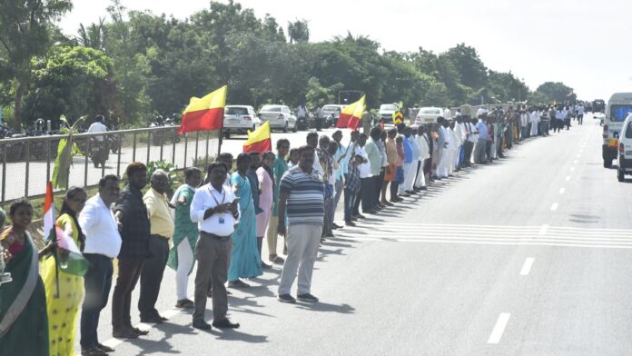 ಅಂರಾರಾಷ್ಟ್ರೀಯ ಪ್ರಜಾಪ್ರಭುತ್ವ ದಿನಾಚರಣೆ ಅಂಗವಾಗಿ ಸೆಪ್ಟಂಬರ್ 15ರಂದು ಬೀದರ್ನಿಂದ ಚಾಮರಾಜನಗರದವರೆಗೆ ಬೃಹತ್ ಮಾನವ ಸರಪಳಿ ನಿರ್ಮಾಣ ಮಾಡಲಾಗಿದ್ದು, ವಿಶಿಷ್ಟ ದಾಖಲೆಯನ್ನು ನಿರ್ಮಿಸಲಾಗಿದೆ. ಮಾನವ ಸರಪಳಿ ಕಾರ್ಯಕ್ರಮಕ್ಕೆ ಧಾರವಾಡ ಜಿಲ್ಲೆಯಲ್ಲಿ 3.5 ಲಕ್ಷ ಜನರು...