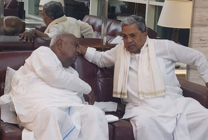 ಮುಖ್ಯಮಂತ್ರಿ ಸಿದ್ದರಾಮಯ್ಯ ಅವರು ಇಂದು ಕೆಂಪೇಗೌಡ ಅಂತಾರಾಷ್ಟ್ರೀಯ ವಿಮಾನ ನಿಲ್ದಾಣದಲ್ಲಿ ಮಾಜಿ ಪ್ರಧಾನಿ ಹೆಚ್ ಡಿ ದೇವೇಗೌಡರನ್ನು ಅನಿರೀಕ್ಷಿತವಾಗಿ ಭೇಟಿಯಾದರು.