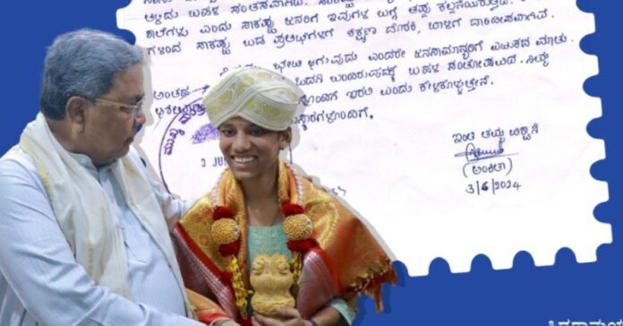 ಎಸೆಸೆಲ್ಸಿ ಪರೀಕ್ಷೆಯಲ್ಲಿ ಶೇ. 100 ಅಂಕ ಗಳಿಸಿ ರಾಜ್ಯಕ್ಕೇ ಮೊದಲ ಸ್ಥಾನ ಪಡೆದ ಬಾಗಲಕೋಟೆ ಜಿಲ್ಲೆ ಮೆಳ್ಳಿಗೇರಿಯ ಮೊರಾರ್ಜಿ ದೇಸಾಯಿ ವಸತಿ ಶಾಲೆಯ ಅಂಕಿತಾ ಬಸಪ್ಪ ಕೊಣ್ಣೂರ ಮುಖ್ಯಮಂತ್ರಿ ಸಿದ್ದರಾಮಯ್ಯ ಅವರಿಗೆ ಪತ್ರ...