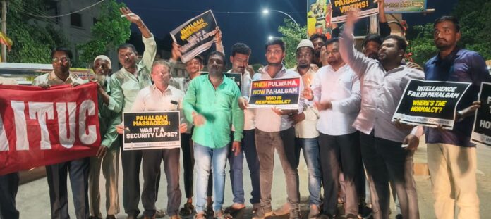 "ಕಾಶ್ಮೀರದಲ್ಲಿ ಮಂಗಳವಾರ ಪ್ರವಾಸಿಗರ ಮೇಲೆ ನಡೆದಂತಹ ಕೃತ್ಯವನ್ನು ಖಂಡಿಸಿ, ಕೂಡಲೇ ಉಗ್ರರ ವಿರುದ್ಧ ಕಾರ್ಯಾಚರಣೆಗೆ ಒತ್ತಾಯಿಸಿ, ದಾವಣಗೆರೆ ಜಿಲ್ಲೆ ಚನ್ನಗಿರಿ ತಾಲ್ಲೂಕಿನ ಯುವ ಕಾಂಗ್ರೆಸ್ ಮುಖಂಡರು, ಕಾರ್ಯಕರ್ತರು ಚನ್ನಗಿರಿ ನಗರದ ಗಾಂಧಿ ವೃತ್ತದಲ್ಲಿ...