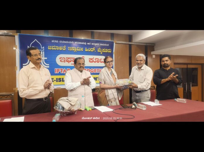 ಮೈಸೂರಿನ ಪ್ರೆಸಿಡೆಂಟ್ ಹೋಟೆಲ್ ನಲ್ಲಿ ಭಾನುವಾರ ಸಂಜೆ ನಡೆದ ಇಫ್ತಾರ್ ಕೂಟದಲ್ಲಿ ಅಕ್ಕ ಮಹಾದೇವಿ ಮಹಿಳಾ ವಿಶ್ವ ವಿದ್ಯಾಲಯದ ವಿಶೇಷಾಧಿಕಾರಿ ಪ್ರೊ ಹೇಮಲತ ಮಾತನಾಡಿ 'ಸೌಹಾರ್ದತೆ,ಸಹಬಾಳ್ವೆ, ಪರೋಪಕಾರ ಜೀವನದ ಧ್ಯೇಯವಾಗಬೇಕು' ಎಂದರು.