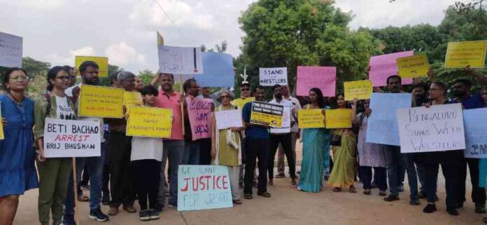 ದೆಹಲಿಯಲ್ಲಿ ಕುಸ್ತಿಪಟುಗಳು ನಡೆಸುತ್ತಿರುವ ಪ್ರತಿಭಟನೆಯನ್ನು ಬೆಂಬಲಿಸಿ ಬೆಂಗಳೂರಿನಲ್ಲಿ ಸಮಾನ ಮನಸ್ಕರು ಹಮ್ಮಿಕೊಂಡಿದ್ದ ಪ್ರತಿಭಟನೆಯಲ್ಲಿ ಇತಿಹಾಸಕಾರ ರಾಮಚಂದ್ರ ಗುಹಾ, ಅಥ್ಲೀಟ್ ರೀತ್ ಅಬ್ರಹಾಂ, ಈಜುಪಟು ನಿಶಾ ಮಿಲೆಟ್ ಮೊದಲಾದವರು ಭಾಗವಹಿಸಿದ್ದಾರೆ.