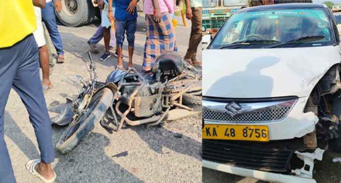 ಕಾರು ಹಾಗೂ ಬೈಕ್ ನಡುವೆ ಮುಖಾಮುಖಿ ಡಿಕ್ಕಿ ಸಂಭವಿಸಿ, ಸ್ಥಳದಲ್ಲೇ ಬೈಕ್ ಸವಾರ ಸ್ಥಳದಲ್ಲೇ ಸಾವನ್ನಪ್ಪಿರುವ ಘಟನೆ ರಾಯಚೂರು ಜಿಲ್ಲೆಯ ಮಾನ್ವಿ ತಾಲೂಕಿನ ಹೊರವಲಯದಲ್ಲಿ ಶುಕ್ರವಾರ ನಡೆದಿದೆ.