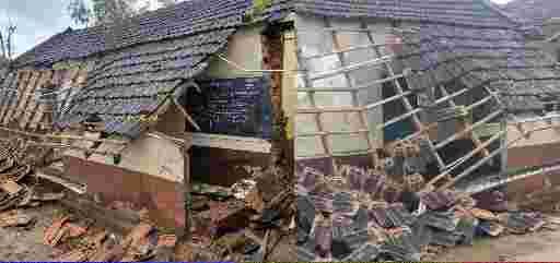 ಹೊಸನಗರ ತಾಲೂಕಿನ ರಿಪ್ಪನ್ ಪೇಟೆಯಲ್ಲಿ ಸೋಮವಾರ ರಾತ್ರಿ ಸುರಿದ ಭಾರಿ ಮಳೆಯಿಂದ ಬೆಳ್ಳೂರು ಗ್ರಾಮ ಪಂಚಾಯತಿ ವ್ಯಾಪ್ತಿಯ ಅಡ್ಡೇರಿ ಗ್ರಾಮದ ಸರ್ಕಾರಿ ಹಿರಿಯ ಪ್ರಾಥಮಿಕ ಶಾಲೆಯ ಕಟ್ಟಡದ ಗೋಡೆಗಳು ಕುಸಿದು ಬಿದ್ದಿವೆ.