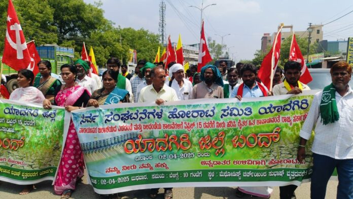 ಯಾದಗಿರಿ ಜಿಲ್ಲೆಯ ನಾರಾಯಣಪುರ ಎಡ-ಬಲದಂಡೆ ಕಾಲುವೆಗಳಿಗೆ ರೈತರ ಬೆಳೆ ರಕ್ಷಣೆಗಾಗಿ ಏಪ್ರಿಲ್ 15ರವರೆಗೆ ನೀರು ಹರಿಸಲು ಒತ್ತಾಯಿಸಿ ಸರ್ವ ಸಂಘಟನೆಗಳ ಹೋರಾಟ ಸಮಿತಿಯಿಂದ ಯಾದಗಿರಿ ಜಿಲ್ಲಾ ಕೇಂದ್ರ ಬಂದ್ ಮಾಡಿ ಬೃಹತ್ ಪ್ರತಿಭಟನೆ...