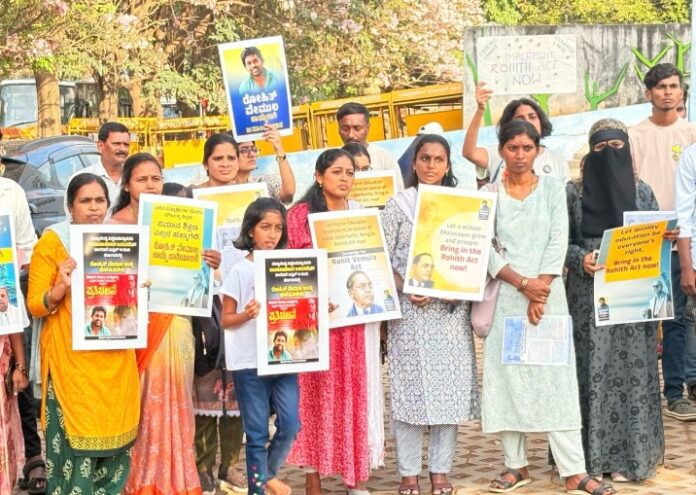 ಶಿಕ್ಷಣ ಸಂಸ್ಥೆಗಳಲ್ಲಿ ದಲಿತ ಮತ್ತು ಬಹುಜನ ವಿದ್ಯಾರ್ಥಿಗಳ ಮೇಲೆ ಆಗುತ್ತಿರುವ ಜಾತಿ ದೌರ್ಜನ್ಯ ಮತ್ತು ತಾರತಮ್ಯವನ್ನು ತಡೆಗಟ್ಟಲು ರೋಹಿತ್ ವೇಮುಲ ಕಾಯ್ದೆ ಜಾರಿಗೊಳಿಸುವಂತೆ ಆಗ್ರಹಿಸಿ, ರೋಹಿತ್ ಕಾಯ್ದೆಗಾಗಿ ಜನಾಂದೋಲನ ವತಿಯಿಂದ ಶನಿವಾರ ಬೆಂಗಳೂರಿನ...