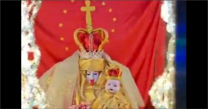 ಮುಂಬೈನ ದೇವಾಲಯವೊಂದರಲ್ಲಿ ಕಾಳಿ ವಿಗ್ರಹವು ಯೇಸುಕ್ರಿಸ್ತನ ತಾಯಿ ಮೇರಿ ವೇಷ-ಭೂಷಣದಲ್ಲಿ ಕಾಳಿ ವಿಗ್ರಹ ಪತ್ತೆಯಾಗಿದ್ದು, ವಿಡಿಯೋ ವೈರಲ್ ಆಗುತ್ತಿದ್ದಂತೆ ಅರ್ಚಕನ ಬಂಧನ ಮಾಡಲಾಗಿದೆ. "ಕನಸಿನಲ್ಲಿ ಬಂದು ಕಾಳಿ ಮಾತೆ ತಿಳಿಸಿದಂತೆ ನಾನು ಮಾಡಿದೆ"...