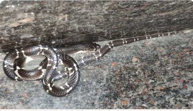 ಶಿವಮೊಗ್ಗದ ಚಾಲುಕ್ಯ ನಗರದ 14 ನೇ ತಿರುವಿನಲ್ಲಿರುವ ಮನೆಯೊಂದರಲ್ಲಿ ನಾಗರ ಹಾವಿಗಿಂದ 5 ಪಟ್ಟು ಹೆಚ್ಚು ವಿಷ ಹೊಂದಿರುವ ಕಡಂಬಳ ಹಾವನಿ ಮರಿ ಕಾಣಿಸಿಕೊಂಡಿದ್ದು, ಅದನ್ನು ಉರಗ ತಜ್ಞ ಸ್ನೇಕ್ ಕಿರಣ್ ರಕ್ಷಿಸಿದ್ದಾರೆ.