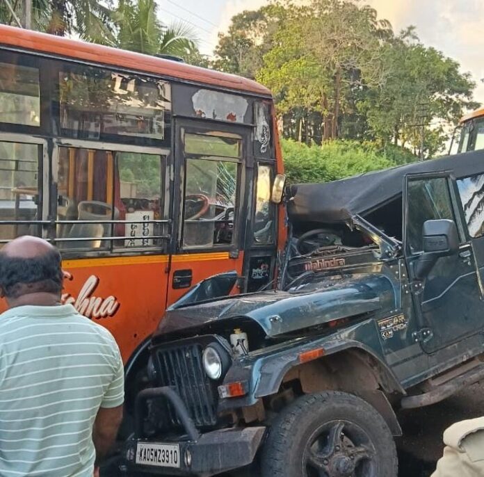 ವೇಣೂರು | ನಿಯಂತ್ರಣ ತಪ್ಪಿ ಥಾರ್ ವಾಹನಕ್ಕೆ ಗುದ್ದಿದ ಖಾಸಗಿ ಬಸ್: ಜೀಪ್ ಚಾಲಕನಿಗೆ ಗಂಭೀರ ಗಾಯ