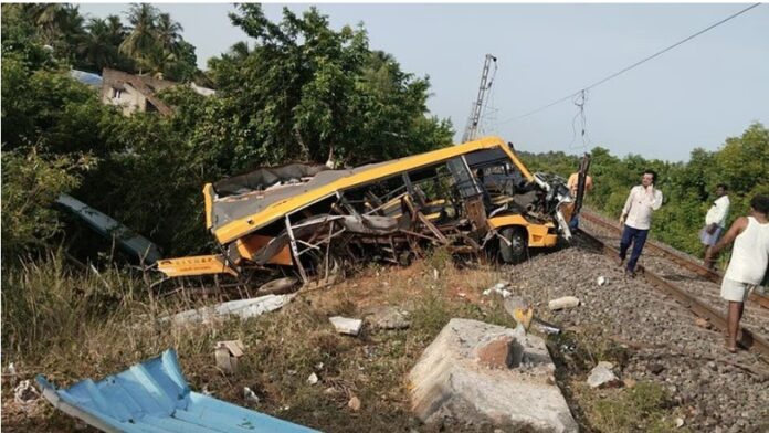 ಶಾಲಾ ವಾಹನಕ್ಕೆ ರೈಲು ಡಿಕ್ಕಿ ಹೊಡೆದ ಪರಿಣಾಮ ಮೂವರು ವಿದ್ಯಾರ್ಥಿಗಳು ಸಾವನ್ನಪ್ಪಿದ ಘಟನೆ ತಮಿಳುನಾಡಿನ ಕಡಲೂರು ಜಿಲ್ಲೆಯ ಸೆಮ್ಮಂಗುಪ್ಪಂನಲ್ಲಿ ನಡೆದಿದೆ. ಅಪಘಾತದಲ್ಲಿ ಗಾಯಗೊಂಡ 10 ವಿದ್ಯಾರ್ಥಿಗಳನ್ನು ಸ್ಥಳೀಯ ಆಸ್ಪತ್ರೆಗೆ ದಾಖಲಿಸಲಾಗಿದೆ.