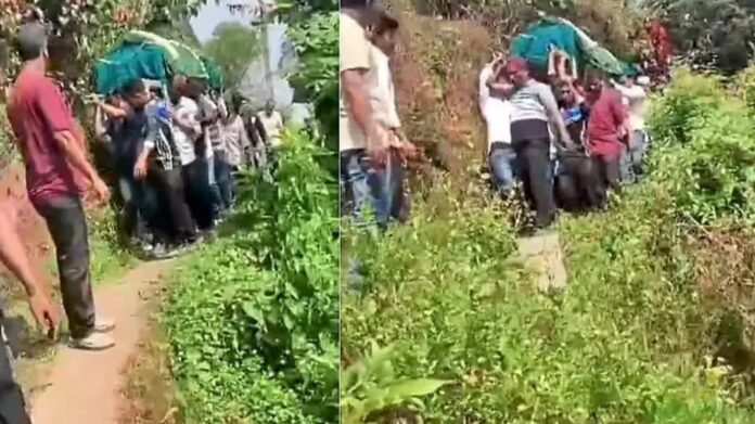 ಚಿಕ್ಕಮಗಳೂರು l ಮೃತದೇಹ ಸಾಗಿಸಲು ಸಂಕ್ಲಾಪುರ ಗ್ರಾಮಸ್ಥರ ಹರಸಾಹಸ!