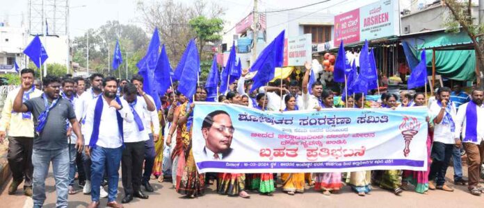 ನಗರದ ಡಾ.ಬಿ.ಆರ್. ಅಂಬೇಡ್ಕರ್ ವೃತ್ತದಿಂದ ಜಿಲ್ಲಾಧಿಕಾರಿಗಳವರೆಗೆ ಪ್ರತಿಭಟನಾ ಮೆರವಣಿಗೆ...