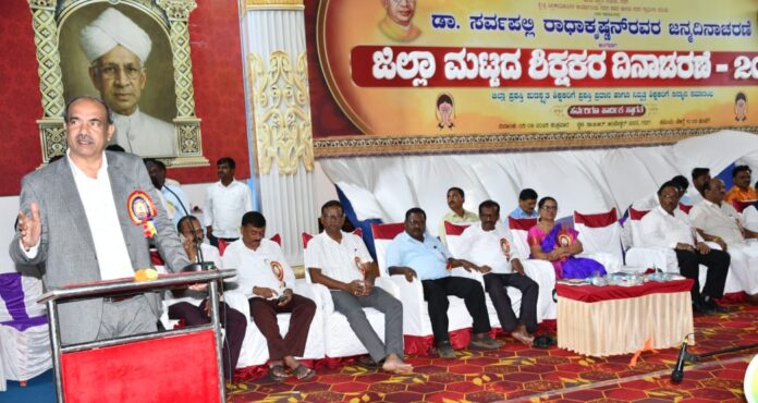 "ಹಿಂದೆ ಗುರು ಇರಬೇಕು ಮುಂದೆ ಗುರಿ ಇರಬೇಕು. ಆಗಮಾತ್ರ ಗುರಿ ಸಾಧನೆ ಸಾದ್ಯಮಾಗುತ್ತದೆ. ಇಂದು ನಾವೆಲ್ಲ ಇಲ್ಲಿಬಂದು ಸೇರಬೇಕಾದರೇ ಅದಕ್ಕೆ ಶಿಕ್ಷಕರು ಕಾರಣ. ಶಿಕ್ಷಕರು ಇಲ್ಲದ ಸಮಾಜ ಪರಿಪೂರ್ಣ ಆಗಲಾರದು. ಹಿಂದೆ ಮಠಮಾನ್ಯಗಳಲ್ಲಿ...