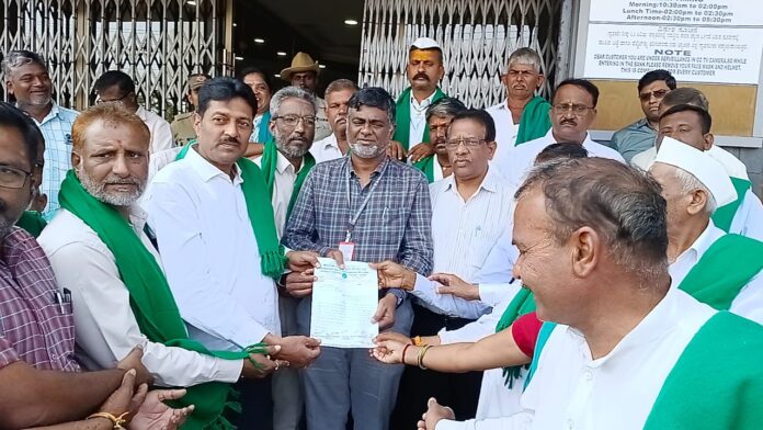 ಪ್ರಾಥಮಿಕ ಸಹಕಾರಿ ಕೃಷಿ ಪತ್ತಿನ ಗ್ರಾಮೀಣಾಭಿವೃದ್ಧಿ ಬ್ಯಾಂಕಿನಿಂದ ರೈತರಿಗೆ ನೀಡಲಾಗುತ್ತಿರುವ ಸಾಲದ ಮೊತ್ತವನ್ನು ಹೆಚ್ಚಿಸಬೇಕೆಂದು ಒತ್ತಾಯಿಸಿ ಕರ್ನಾಟಕ ರಾಜ್ಯ ರೈತ ಸಂಘವು ಬೆಳಗಾವಿ ಜಿಲ್ಲಾ ಕೇಂದ್ರ ಸಹಕಾರಿ ಬ್ಯಾಂಕ್ಗೆ ಮನವಿ ಸಲ್ಲಿಸಿತು.