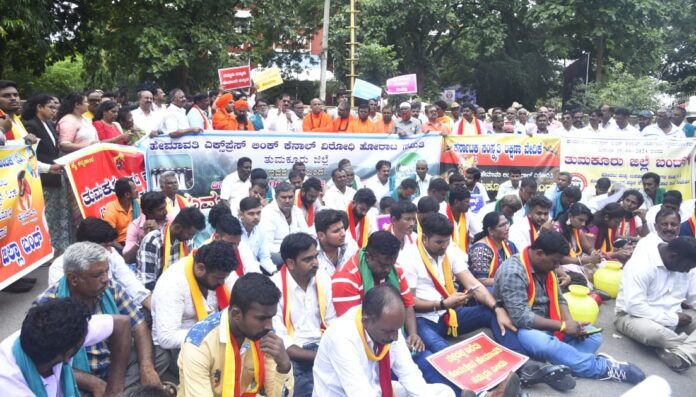 ಹೇಮಾವತಿ ಎಕ್ಸ್‌ಪ್ರೆಸ್ ಲಿಂಕ್ ಕೆನಾಲ್ ಯೋಜನೆಗೆ ವಿರೋಧ; ತುಮಕೂರು ಜಿಲ್ಲಾ ಬಂದ್ ಯಶಸ್ವಿ