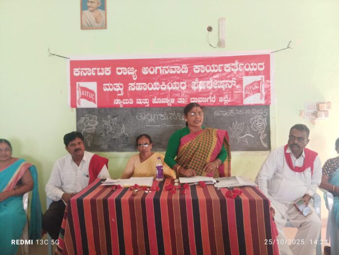 ಅಂಗನವಾಡಿ ಕಾರ್ಯಕರ್ತೆಯರು ಮತ್ತು ಸಹಾಯಕಿಯರು ಒಗ್ಗಟ್ಟಾಗಿ ಹೋರಾಟ ಮಾಡಿದರೆ ಮಾತ್ರ ನಮ್ಮ ಹಕ್ಕು ಸೌಲಭ್ಯಗಳನ್ನು ಪಡೆಯಲು ಸಾಧ್ಯ ಎಂದು ದಾವಣಗೆರೆ ಜಿಲ್ಲೆ ಹೊನ್ನಾಳಿ ತಾಲೂಕಿನ ಅಂಗನವಾಡಿ ಕಾರ್ಯಕರ್ತೆಯರ ಸಂಘಟನಾ ಸಭೆಯಲ್ಲಿ ಸಹಾಯಕಿಯರ ಫೆಡರೇಷನ್...