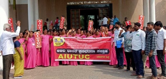 ಗುತ್ತಿಗೆ-ಹೊರಗುತ್ತಿಗೆ ಕಾರ್ಮಿಕರ ಸೇವೆ ಕಾಯಂ, ಆಶಾ. ಅಂಗನವಾಡಿ ಮತ್ತು ಬಿಸಿಯೂಟ ಕಾರ್ಯಕರ್ತೆಯರನ್ನು ಕಾರ್ಮಿಕರು ಎಂದು ಪರಿಗಣಿಸಿ ಇಪಿಎಫ್, ಇಎಸ್ಐ ಹಾಗು ಪಿಂಚಣಿ ಸೌಲಭ್ಯ, ಕಾರ್ಮಿಕ ವಿರೋಧಿ 4 ಕಾರ್ಮಿಕ ನೀತಿಗಳನ್ನು ಕೈಬಿಡುವುದು ಸೇರಿದಂತೆ...