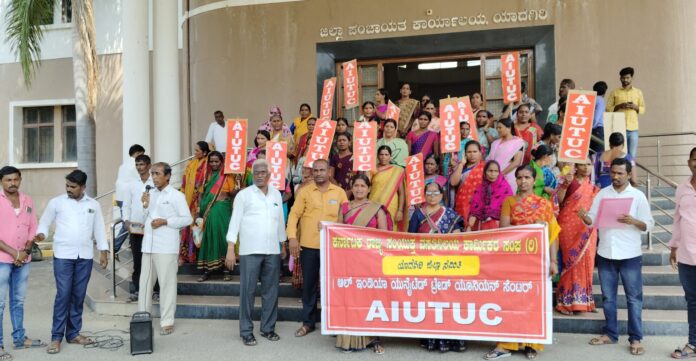 ಹೊರಗುತ್ತಿಗೆ ಆಧಾರದ ಮೇಲೆ ವಸತಿ ನಿಲಯಗಳಲ್ಲಿ ಸೇವೆ ಸಲ್ಲಿಸುತ್ತಿರುವ ಸಿಬ್ಬಂದಿಗಳಿಗೆ ಜೂನ್ ತಿಂಗಳಿಂದ ಬಾಕಿ ಇರುವ ಮಾಸಿಕ ವೇತನ ಸೇರಿದಂತೆ ಹಲವು ಶಾಸನಬದ್ಧ ಸೌಲಭ್ಯಗಳನ್ನು ಒದಗಿಸಬೇಕೆಂದು ಎಐಯುಟಿಯುಸಿ ಸಂಯೋಜಿತ ಕರ್ನಾಟಕ ರಾಜ್ಯ ಸಂಯುಕ್ತ...