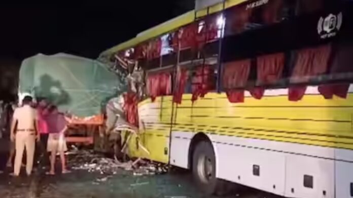 ಚೆನ್ನೈ-ತಿರುಚಿ ರಾಷ್ಟ್ರೀಯ ಹೆದ್ದಾರಿಯ ಮಧುರಾಂತಕಂ ಎಂಬಲ್ಲಿ ಬಸ್-ಲಾರಿ ಡಿಕ್ಕಿ ಹೊಡೆದಿದ್ದು, ನಾಲ್ವರು ಮೃತಪಟ್ಟು 15ಕ್ಕೂ ಹೆಚ್ಚು ಮಂದಿ ಗಾಯಗೊಂಡಿದ್ದಾರೆ.