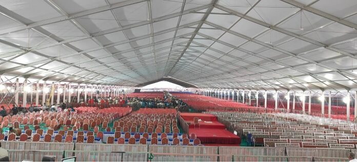 ಚಿತ್ರದುರ್ಗ: ಇಲ್ಲಿನ ಬಸವಮೂರ್ತಿ ಮಾದರ ಚನ್ನಯ್ಯ ಪೀಠದ ಪಕ್ಕದ ಮೈದಾನದಲ್ಲಿ ಇಂದು (ಜನವರಿ 28) ನಡೆಯಲಿರುವ ’ಶೋಷಿತರ ಜಾಗೃತಿ ಸಮಾವೇಶ’ಕ್ಕಾಗಿ ವೇದಿಕೆ ಸಜ್ಜಾಗಿದೆ.