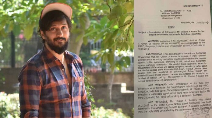 ನಟ, ಸಾಮಾಜಿಕ ಹೋರಾಟಗಾರ ಚೇತನ್ ಕುಮಾರ್ ದೇಶ ವಿರೋಧಿ ಚಟುವಟಿಕೆಗಳಲ್ಲಿ ತೊಡಗಿಕೊಂಡಿದ್ದಾರೆ ಎಂದು ಆರೋಪಿಸಿ ಕೇಂದ್ರ ಗೃಹ ಸಚಿವಾಲಯ ಅವರ ವೀಸಾ ರದ್ದುಗೊಳಿಸಿದೆ. ಈ ಬಗ್ಗೆ ಕಾನೂನು ಹೋರಾಟ ಮಾಡುವುದಾಗಿ ಹೇಳಿದ್ದ ಚೇತನ್...