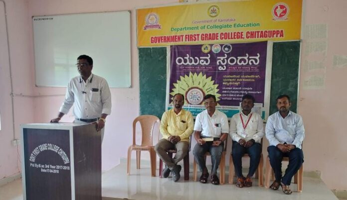 ಯುವ ಸಬಲೀಕರಣ ಮತ್ತು ಕ್ರೀಡಾ ಇಲಾಖೆ, ಬೆಂಗಳೂರಿನ ಜನ ಆರೋಗ್ಯ ಕೇಂದ್ರ ನಿಮಾನ್ಸ್ ಸಹಯೋಗದಲ್ಲಿ ಬೀದರ್ ಯುವ ಸ್ಪಂದನ ಕೇಂದ್ರ ವತಿಯಿಂದ ಚಿಟಗುಪ್ಪ ಪಟ್ಟಣದ ಸರ್ಕಾರಿ ಪ್ರಥಮ ದರ್ಜೆ ಕಾಲೇಜಿನಲ್ಲಿ ಯುವ ಸ್ಪಂದನ...