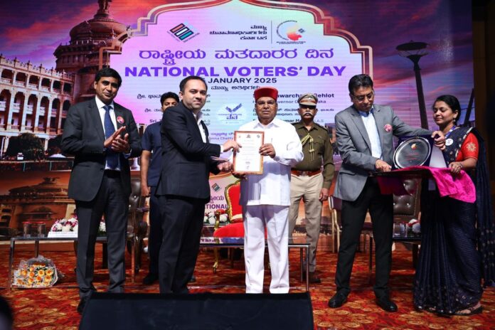 ಚುನಾವಣಾ ಆಯೋಗ ನೀಡುವ 2024-25ನೇ ಸಾಲಿನ ಅತ್ಯುತ್ತಮ ಚುನಾವಣಾಧಿಕಾರಿ ಪ್ರಶಸ್ತಿಯನ್ನು ಬೀದರ್ ಜಿಲ್ಲಾ ಪಂಚಾಯತ್ ಮುಖ್ಯ ಕಾರ್ಯನಿರ್ವಾಹಕ ಅಧಿಕಾರಿ ಡಾ.ಗಿರೀಶ ದಿಲೀಪ ಬದೋಲೆ ಅವರಿಗೆ ಬೆಂಗಳೂರಿನಲ್ಲಿ ಶನಿವಾರ ಪ್ರದಾನ ಮಾಡಲಾಯಿತು.