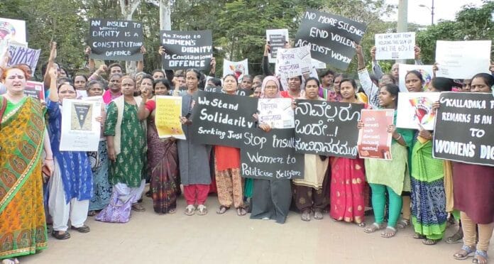 ಆರ್ಎಸ್ಎಸ್ ಮುಖಂಡ ಕಲ್ಲಡ್ಕ ಪ್ರಭಾಕರ್ ಭಟ್ ಅವರನ್ನು ರಾಜ್ಯ ಸರ್ಕಾರ ಕೂಡಲೇ ಬಂಧಿಸಬೇಕು ಎಂದು ಆಗ್ರಹಿಸಿ ಮಹಿಳೆಯರು ಶುಕ್ರವಾರ ಬೆಂಗಳೂರಿನ ಫ್ರೀಡಂ ಪಾರ್ಕಿನಲ್ಲಿ ಪ್ರತಿಭಟನೆ ನಡೆಸಿದರು.