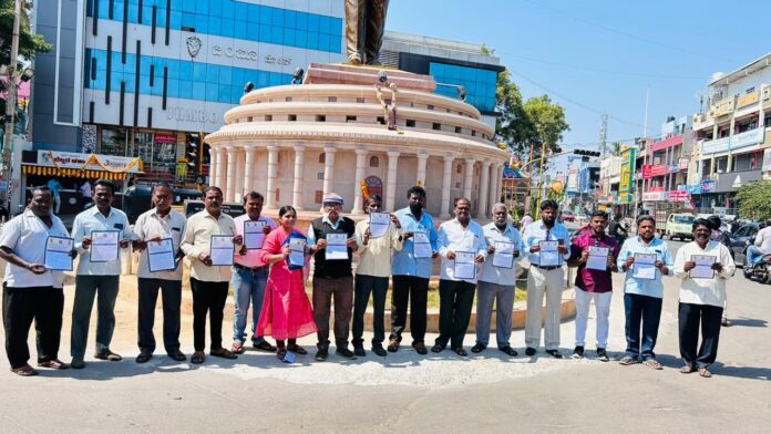 ಬೆಂಗಳೂರಿನ ಫ್ರೀಡಂ ಪಾರ್ಕಿನಲ್ಲಿ ಅಕ್ಟೋಬರ್ 31ರಂದು ನಡೆಯಲಿರುವ ಒಳ ಮೀಸಲಾತಿ ಸಾಂಕೇತಿಕ ಹೋರಾಟದ ಕರಪತ್ರಗಳನ್ನು ವಿಜಯನಗರ ಜಿಲ್ಲೆ ಹೊಸಪೇಟೆಯ ಅಂಬೇಡ್ಕರ್ ವೃತ್ತದಲ್ಲಿ ಕರ್ನಾಟಕ ಮಾದಿಗ ರಕ್ಷಣಾ ವೇದಿಕೆ ಬಿಡುಗಡೆ ಮಾಡಿದೆ.