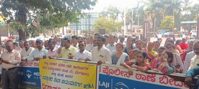ಸರ್ಕಾರಿ ಪ್ರಥಮ ದರ್ಜೆ ಕಾಲೇಜುಗಳ ಅತಿಥಿ ಉಪನ್ಯಾಸಕರನ್ನು ಖಾಯಂಗೊಳಿಸುವದು ಹಾಗೂ ಪ್ರತಿ ತಿಂಗಳು ವೇತನ ಪಾವತಿಸುವುದು ಸೇರಿ, ವಿವಿಧ ಬೇಡಿಕೆಗಳಿಗೆ ಆಗ್ರಹಿಸಿ ಪ್ರಥಮದರ್ಜೆ ಕಾಲೇಜುಗಳ ಅತಿಥಿ ಉಪನ್ಯಾಸಕರು ಜಿಲ್ಲಾ ಘಟಕದಿಂದ ತರಗತಿ ಬಹಿಷ್ಕರಿಸಿ...