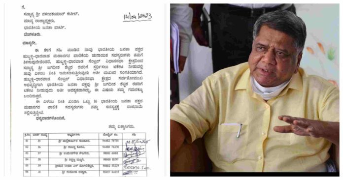 ಕಟೀಲ್ಗೆ ಪತ್ರ ಬರೆದ ಬಿಜೆಪಿ 16 ಚುನಾಯಿತ ಸದಸ್ಯರು