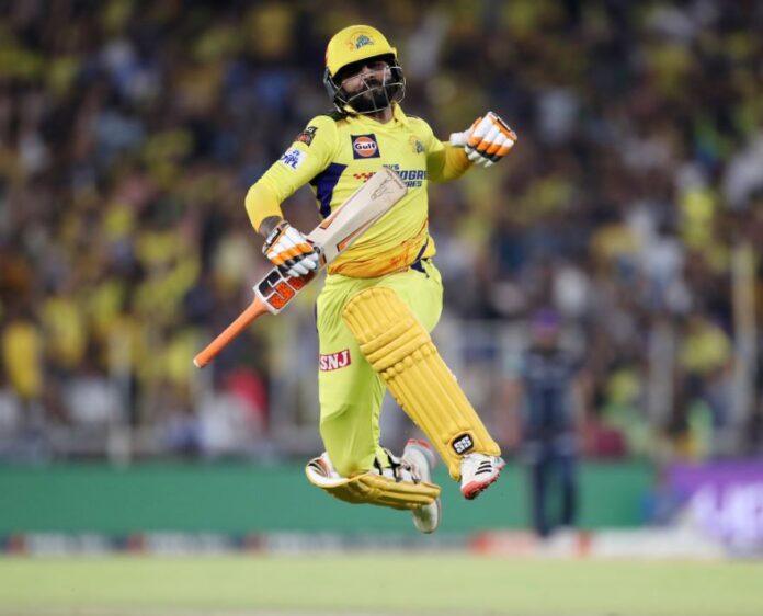ಕೊನೆಯ ಓವರ್ನ ಎರಡು ಬಾಲ್ಗೆ ಒಂದು ಸಿಕ್ಸರ್ ಒಂದು ಫೋರ್ ಬಾರಿಸಿ ತಂಡಕ್ಕೆ ಜಯ ತಂದಿಟ್ಟ ಜಡೇಜಾ