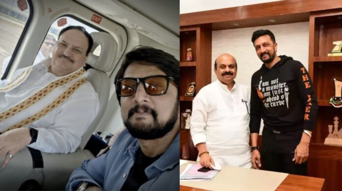 ಜೆ.ಪಿ ನಡ್ಡಾ ಜೊತೆಗೆ ಹುಬ್ಬಳ್ಳಿಯಿಂದ ಹೆಲಿಕಾಪ್ಟರ್ನಲ್ಲಿ ಬಂದಿಳಿದ ಸುದೀಪ್