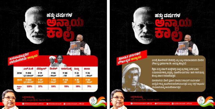 ಕಳೆದ ಹತ್ತು ವರ್ಷಗಳ ಬಿಜೆಪಿ ಆಡಳಿತವನ್ನು ನರೇಂದ್ರ ಮೋದಿಯವರು ಮತ್ತು ಬಿಜೆಪಿಯ ನಾಯಕರು 'ಅಮೃತ ಕಾಲ' ಎಂದು ಬಣ್ಣಿಸುತ್ತಿದ್ದಾರೆ. ವಾಸ್ತವದಲ್ಲಿ ಇದು ಭಾರತದ ʼವಿನಾಶ ಕಾಲʼ ಎಂದು ಸಿಎಂ ಸಿದ್ದರಾಮಯ್ಯ ಟೀಕಿಸಿದ್ದಾರೆ.