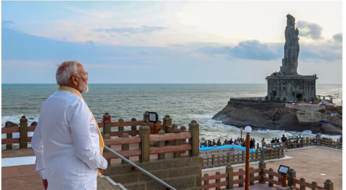 ಚುನಾವಣಾ ಪ್ರಚಾರದ ಬಳಿಕ ಪ್ರಧಾನಿ ನರೇಂದ್ರ ಮೋದಿ ಅವರು ಗುರುವಾರ(ಮೇ.30) ಸಂಜೆ ತಮಿಳುನಾಡಿನ ಕನ್ಯಾಕುಮಾರಿಗೆ ಆಗಮಿಸಿದ್ದು, ಅಲ್ಲಿನ ಪ್ರಸಿದ್ಧ ವಿವೇಕಾನಂದ ಶಿಲಾ ಸ್ಮಾರಕದಲ್ಲಿ 45 ತಾಸುಗಳ ಧ್ಯಾನವನ್ನು ಆರಂಭಿಸಿದರು.