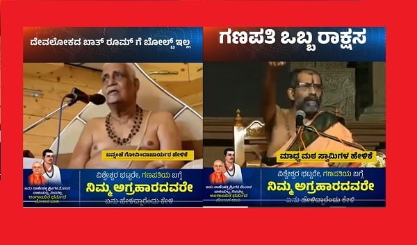"ಗಣಪತಿಯ ಕತೆ ಅವೈಜ್ಞಾನಿಕ ಮತ್ತು ಅಸಹ್ಯಕರ" ಎಂದು ಹಿರಿಯ ವಿದ್ವಾಂಸರಾದ ದಿವಂಗತ ಬನ್ನಂಜೆ ಗೋವಿಂದಾಚಾರ್ಯರು ಹೇಳಿರುವ ವಿಡಿಯೊ ಕ್ಲಿಪ್ ಈಗ ವೈರಲ್ ಆಗುತ್ತಿದೆ. ಸಾಣೇಹಳ್ಳಿ ಮಠದ ಪಂಡಿತಾರಾಧ್ಯ ಶಿವಾಚಾರ್ಯ ಸ್ವಾಮೀಜಿಯವರು, "ಗಣಪತಿ ನಮ್ಮ ಸಂಸ್ಕೃತಿಯಲ್ಲ"...