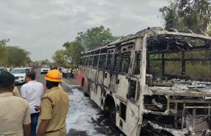 ಬಸ್ಗೆ ಬೆಂಕಿ ಹೊತ್ತುಕೊಂಡು ಸುಟ್ಟು ಕರಕಲಾದ ದುರಂತ ವಿಜಯಪುರ ಜಿಲ್ಲೆಯ ಸಿಂದಗಿ ತಾಲೂಕಿನ ಗಬಸಾವಳಗಿ ಬಳಿ ಬುಧವಾರ ಸಂಭವಿಸಿದೆ.