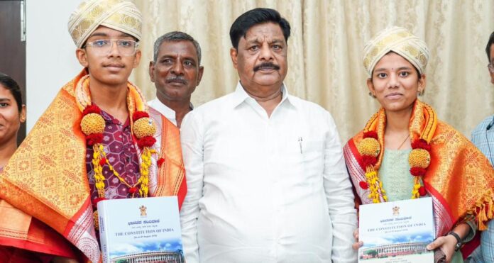 ಎಸ್ಎಸ್ಎಲ್ಸಿ ಪರೀಕ್ಷೆಯಲ್ಲಿ ರಾಜ್ಯಕ್ಕೆ ಪ್ರಥಮ ಸ್ಥಾನ ಪಡೆದಿರುವ ಸಮಾಜ ಕಲ್ಯಾಣ ಇಲಾಖೆಗೆ ಸೇರಿದ ಮೊರಾರ್ಜಿ ವಸತಿ ಶಾಲೆಯ ವಿದ್ಯಾರ್ಥಿನಿ ಕುಮಾರಿ ಅಂಕಿತಾ ಹಾಗೂ ತೃತೀಯ ಸ್ಥಾನ ಗಳಿಸಿದ ಮಂಡ್ಯದ ತುಂಬಕೆರೆ ವಿದ್ಯಾರ್ಥಿ ನವನೀತ್...