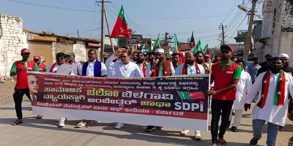 ಸೋಶಿಯಲ್ ಡೆಮಾಕ್ರಟಿಕ್ ಪಾರ್ಟಿ ಆಫ್ ಇಂಡಿಯಾ (ಎಸ್ಡಿಪಿಐ) ಕರ್ನಾಟಕದ ಸಾಮಾಜಿಕ ನ್ಯಾಯಕ್ಕಾಗಿ ಚಲೋ ಬೆಳಗಾವಿ ಅಂಬೇಡ್ಕರ್ ಜಾಥಾ ಡಿಸೆಂಬರ್ 6ರಂದು ಬೆಂಗಳೂರಿನ ವಿಧಾನಸೌಧದಿಂದ ಪ್ರಾರಂಭವಾಗಿದ್ದು ಡಿಸೆಂಬರ್ 11ರಂದು ಬೆಳಗಾವಿಯ ಸುವರ್ಣಸೌಧ ತಲುಪಿ ಸಮಾಪ್ತಿಯಾಗಲಿದೆ.
