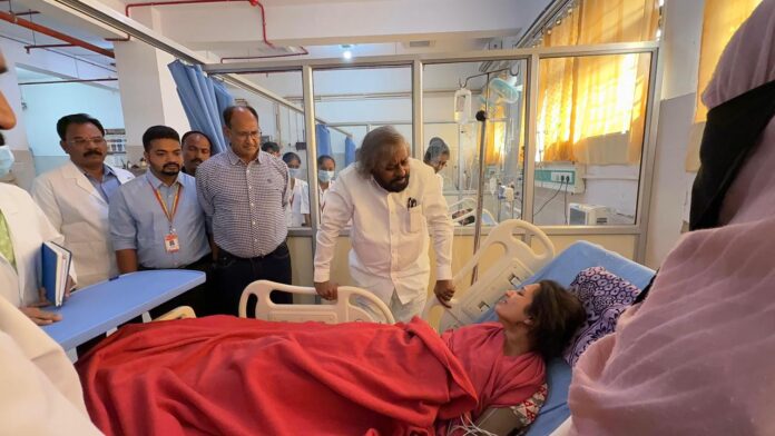 ಬ್ರಿಮ್ಸ್ನಲ್ಲಿ ದಾಖಲಾಗಿ ಚಿಕಿತ್ಸೆ ಪಡೆಯುತ್ತಿರುವ ನಿಲೋಫರ್ ಅವರನ್ನು ಸೋಮವಾರ ಸಚಿವ ಈಶ್ವರ ಖಂಡ್ರೆ ಅವರು ಭೇಟಿ ಮಾಡಿ ಆರೋಗ್ಯ ವಿಚಾರಿಸಿ ಧೈರ್ಯ ತುಂಬಿದರು.
