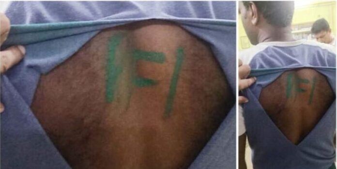 A FIR was registered on the basis of a complaint filed by an army personnel alleging he attacked in a shop by 5-6 miscreants who, after assault, painted PFI on his back.